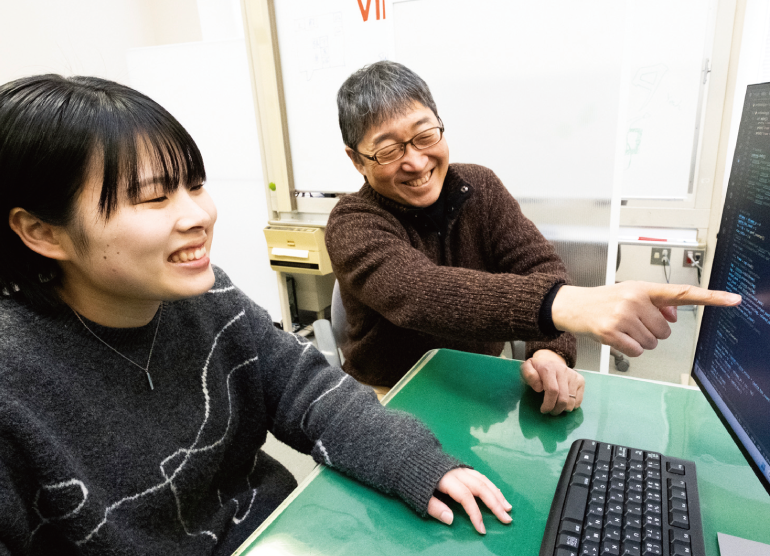 今後は研究と並行して就活も進めていきます。大学で学んだことを生かして、世の中を楽しくするようなシステム開発の仕事をしてみたいです。授業でゲーム制作を経験して、ゲーム業界にも興味が出てきました。今までゲームはプレーする側で満足していましたが、自分の作ったものが誰かを笑顔にする、そんな仕事もいいなと思えました。自分が熱中して作ったゲームを誰かが熱中してプレーしてくれる、そんなつながりが生まれたらうれしいですね。