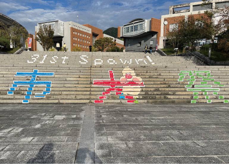 特に2024年には、市大入口の階段の面に絵を描いてお祭り感が伝わる演出にするなど、学祭を最初から最後まで楽しんでもらえるように細部までこだわりました。夏休みは毎日のように大学で作業するなど、大変なことも多かったですが、大好きなものづくりを心ゆくまで楽しめました。