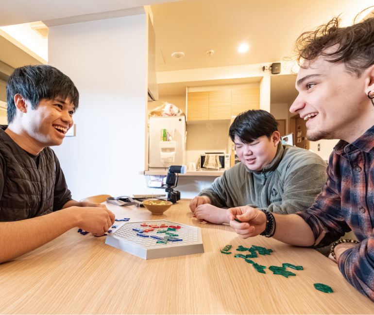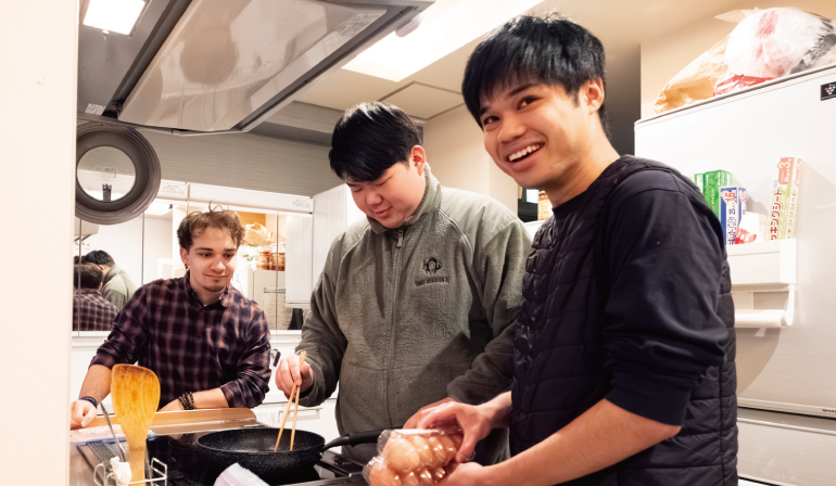 寮では定期的にリーダーがイベントを企画します。日本文化を感じられる流しそうめんや書道、季節ものではハロウィンイベントやクリスマスパーティーなど、内容は毎回変わります。私が担当の時は必ずリスクマネジメントを心がけました。「狭い多目的室で体を動かすミニゲームは怪我につながってしまうかも?」「宗教の制約で牛肉や豚肉が食べられない人にも対応しよう」など、異なる価値観を持った人の集まりが「さくら」の魅力だからこそ、誰もが納得して「エンジョイ」できる環境を作ることを常に意識してきました。共同生活とは、長い時間を同じ空間で過ごすこと。メンバーがどの程度イベントを楽しみたいか、部屋での生活ルールはどのくらい決めた方がいいかなど、価値観のすり合わせを大切にしています。リーダーとしては、全員に気持ちよく生活してほしいので、相手の意見を聞き入れることの大切さは寮で学んだことの一つです。