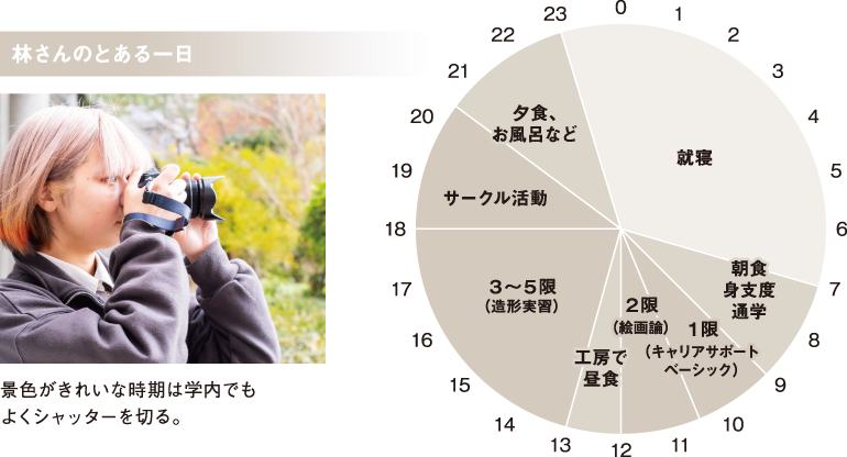 実は、写真部のほかにもいろいろなサークルに入っています。MAC電音(※1)では歌とギターを楽しんでいますし、天地創造部(※2)では学内にピザ窯を設置して、ピザを楽しむイベントを企画したりしています。ある程度の制限はありますが、活動の自由度が高いことが、市大の魅力でもあります。