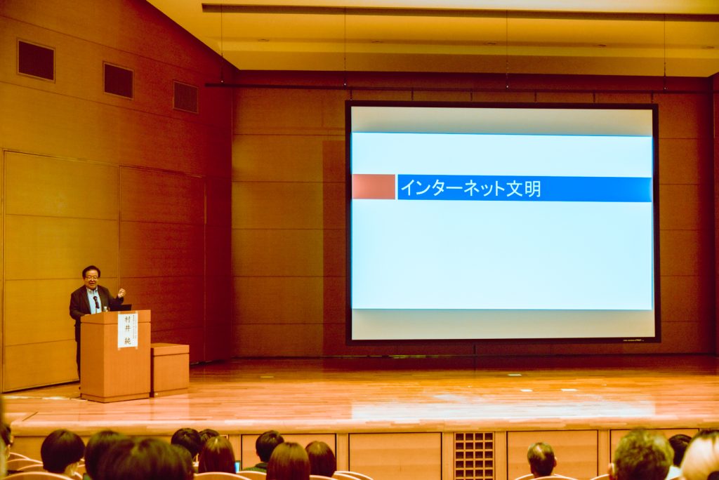 本年4月から本学理事(非常勤)を務めている、慶應義塾大学特別特区特任教授村井純氏による学内講演会「インターネット文明」を9月29日 月曜日に本学講堂大ホールで開催しました。