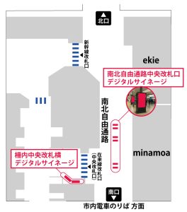 中央改札近くのデジタルサイネージに広告を掲出しています。