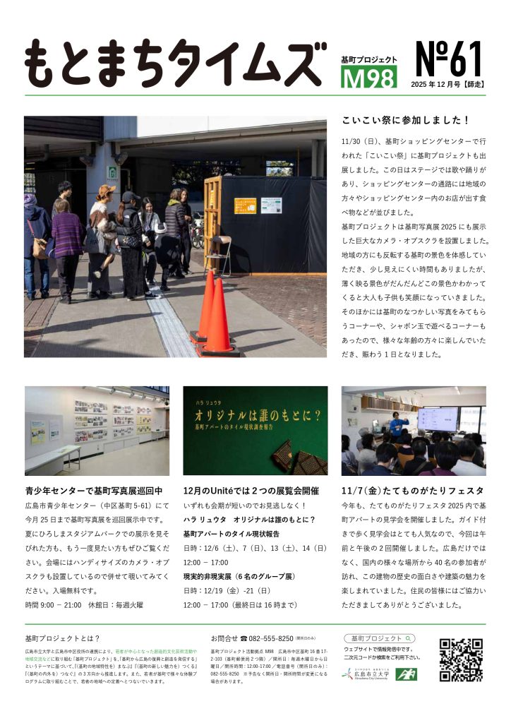本学では、基町プロジェクト活動の一環として、基町プロジェクトおよび基町地区の情報発信を目的に、情報誌「もとまちタイムズ」を発行しています。