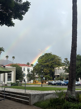 ハワ大学マノア校はキャンパスが広く自然豊かでとてもきれいで魅力的なところが特徴だと思います。ヤシの木や大きな木がキャンパス内のあらゆるところにあったり、プルメリアの花があったりとキャンパスにハワイ感があり、夕方になると夕焼けの綺麗な景色が見られます。ワイキキからバスで30分程度で着き、バスが定期的に出ているため生活しやすかったです。学習面についてハワイ大学マノア校には数多くの学部があり、自分の専門以外の授業を自由に取ることができるため自分の興味がある様々なことを学ぶことができます。私はハワイ語の授業を履修しましたが、今まで日本で受けてきた語学の授業と違い、ジェスチャーで単語や文章を表し、何度も声に出して、聞いて学ぶ、覚えるという授業スタイルが斬新でした。また、異なるバックグラウンドを持つクラスメートと切磋琢磨しながら学ぶことができ、多くの刺激をもらえました。